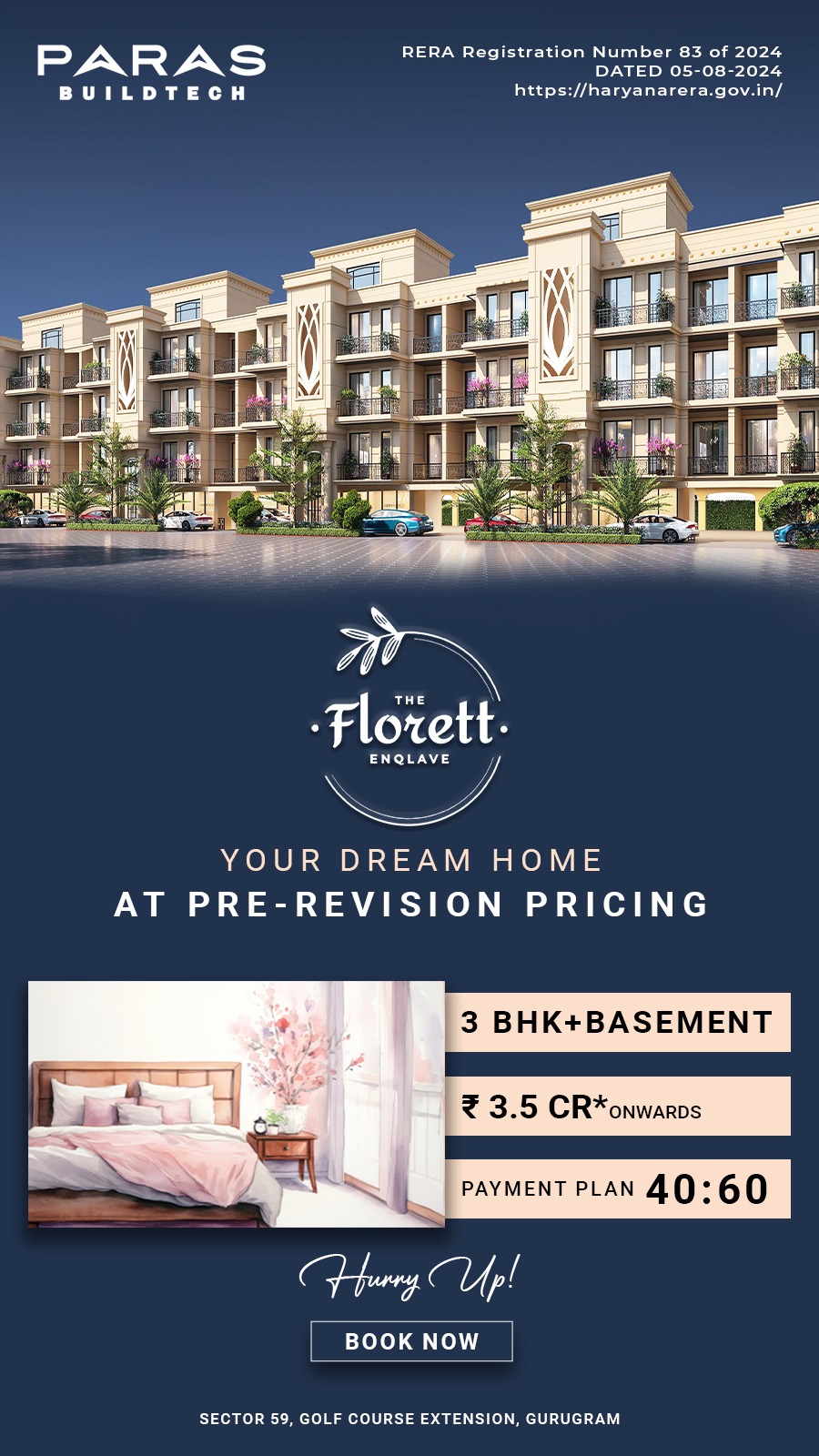 Paras Florett Enclave is strategically located on Golf Course Extension Road, one of the most premium residential zones of Gurgaon.
