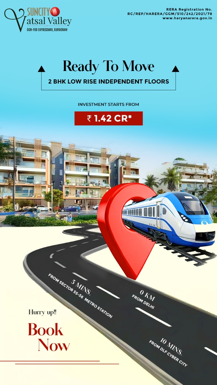 Existing metro -5 Mins Sec 56 Rapid Metro, 10-15 Min Sikandarpur Metro Station -yellow line.